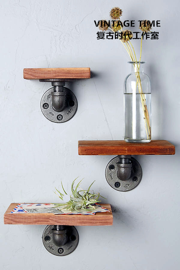 Industrial retro style water pipe flower rack shelf small wall shelf
