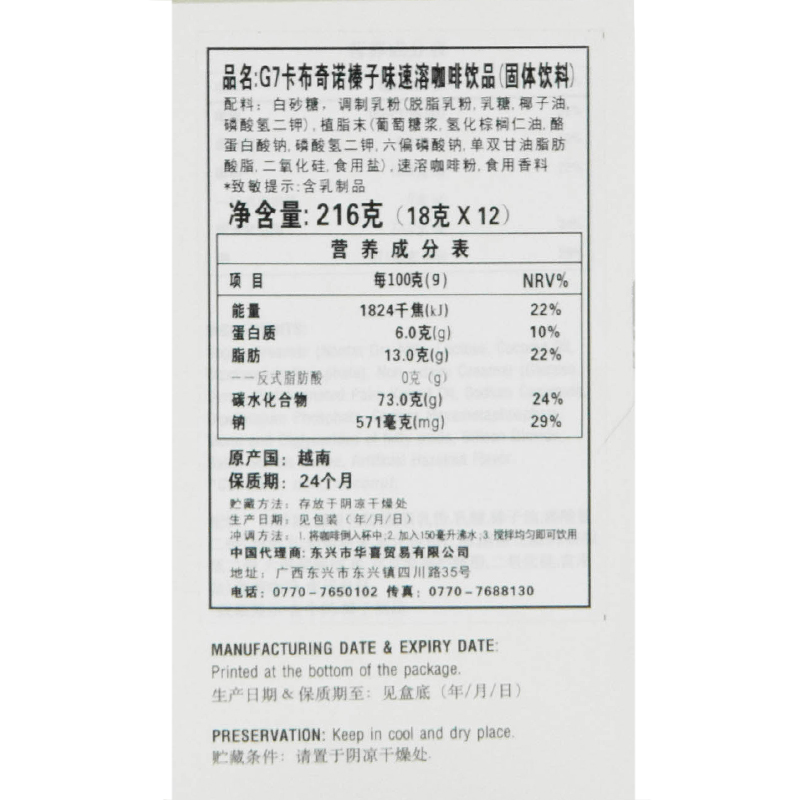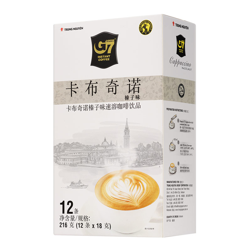Vietnam imported Zhongyuan G7 Hazelnut Cappuccino instant coffee Hazelnut flavor 216g*2 boxes of instant coffee powder