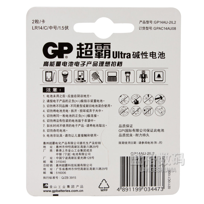 GP Superbar 2 2 Festival Battery C Type LR14 Alkaline 2 bread Superman Shower Rocking Chair Fisher Toy Radio Torch No. 3 No. 3 1 3 No. 1 5v Dry battery 2 grain wholesale