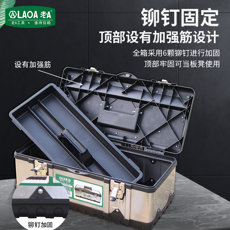 Old A Stainless Steel Toolbox Home Five Gold Tool Containing Box Portable Property Repair Box 16 16 19 23 Inches