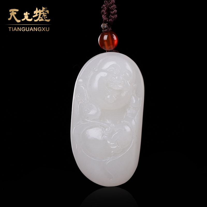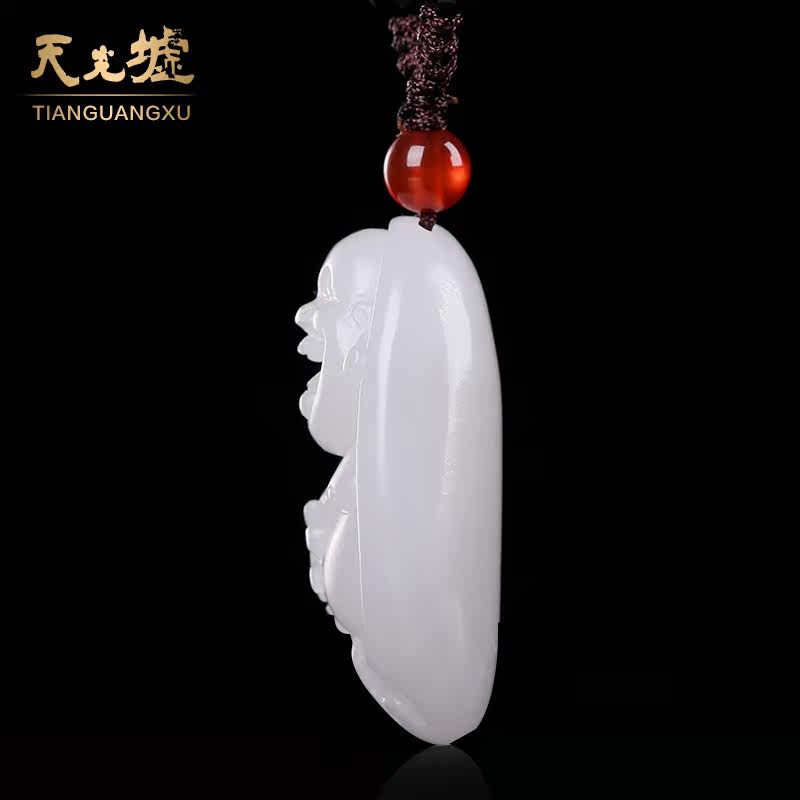 Tian Guang Hui Hetian Jade pendant Natural Hetian White Jade Buddha pendant Laughing Buddha Maitreya Buddha Jade pendant pendant for men and women