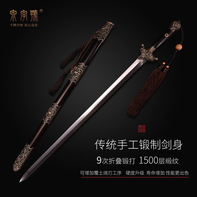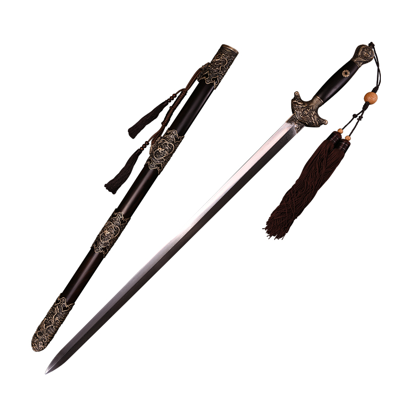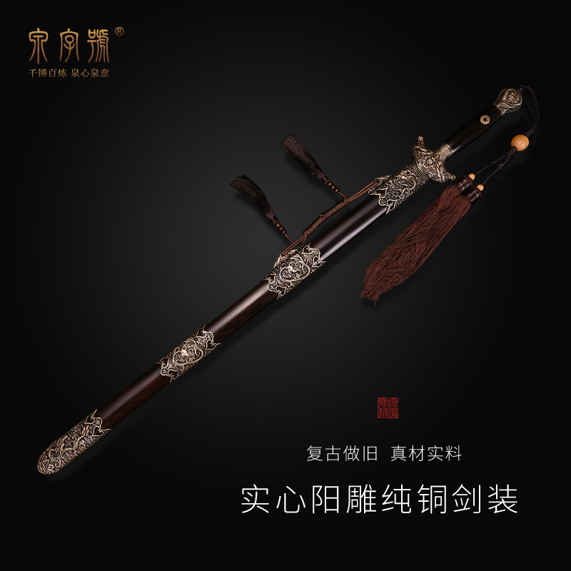 The Longquan City Quancalligraphy Sword Pure Bronze Jade Pig Dragon King Sword Flower Pattern Steel Long Sword handmade sword The sword is not open.