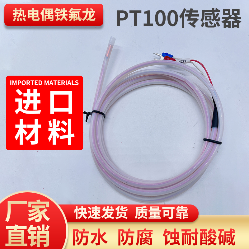 Thermocouple Teflon PT100 sensor K-type thermal resistance temperature-sensing line probe waterproof anti-corrosion anti-acid and alkali cold