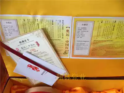 Liling porcelain-Hongguan Kiln Olympic Games Chinese red porcelain two-piece set-Fuwa and Great Wall two colors