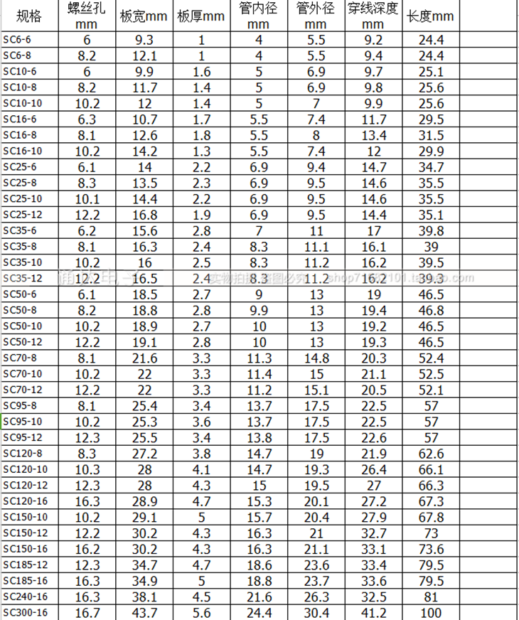 SC50-8 10 12 short copper wiring terminal peep wiring terminal copper wire ear SC-50MM2 square A grade national standard