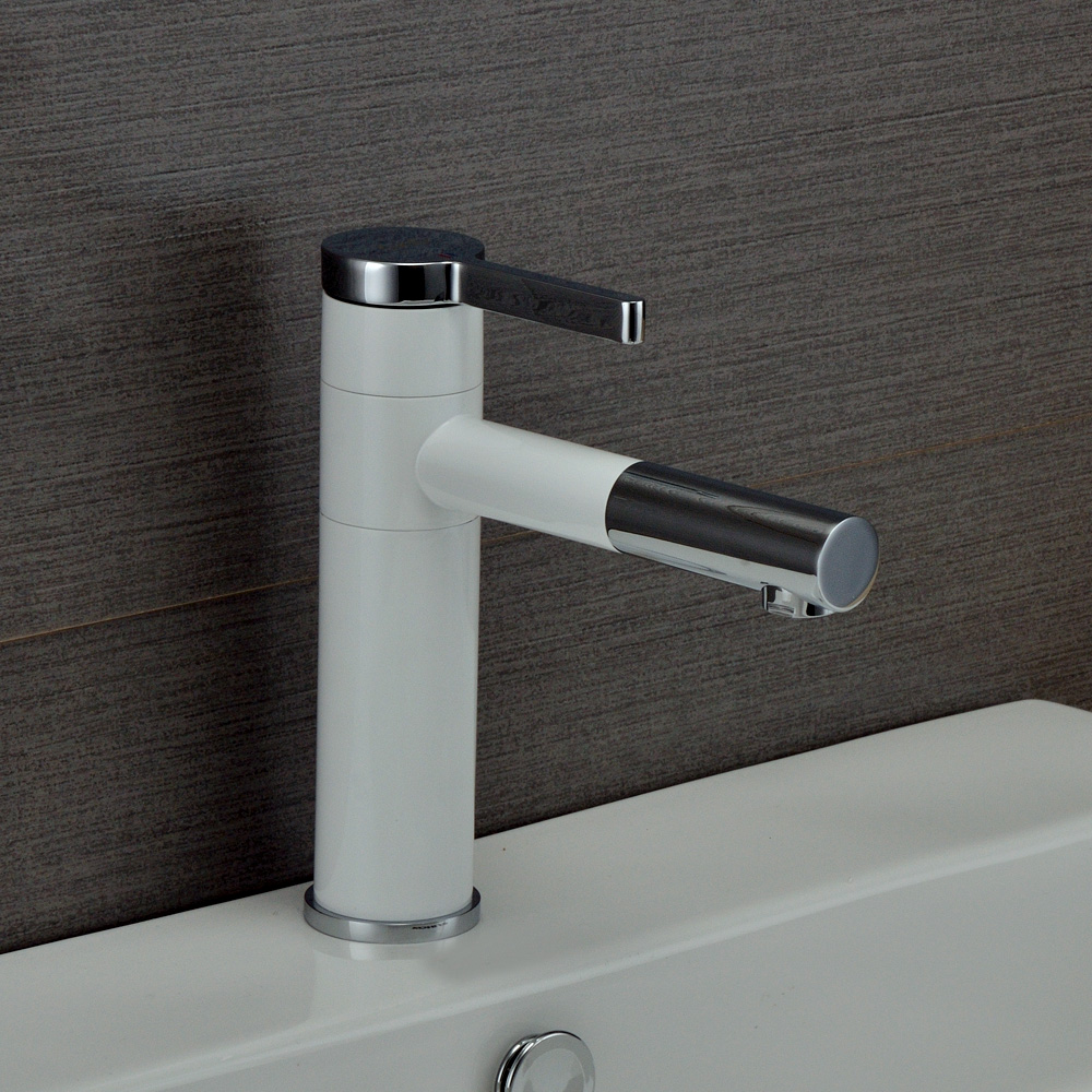 German all-copper swivel white baking lacquered bathroom washbasin tap hot and cold makeup room in the lower basin single-hole face basin