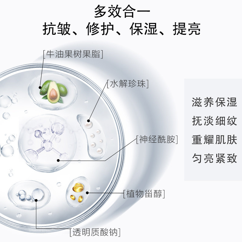 An emulsion face cream for a single product: