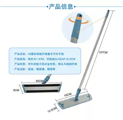 Youlejie 40 cm aluminum plate fiber magic universal flat mop microfiber mop floor mop flat dust removal mop cloth