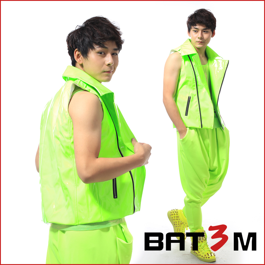 DS singer European and American Chaumen nightclub clothes fluorescent green ultra-beautiful locomotive Machia personality men's stage acting out of the men 's