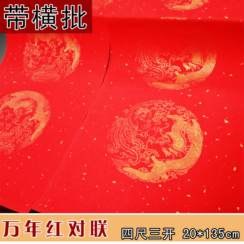Four feet, three open, four open, ten thousand years of red raw rice paper, five words, seven words, Dragon Calligraphy, Couplet, Fu Word, Doufang Red rice paper