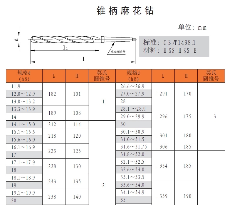 Upper taper shank twist drill straight shank drill upper taper shank drill Φ 1318-20-25 -30mm 10 1