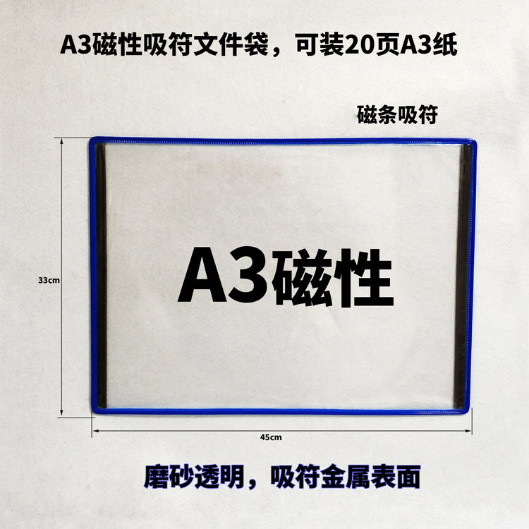 A3 magnetic file bag device wall hanging suction letter magnetic hanging transparent black frosted blue pvc green red