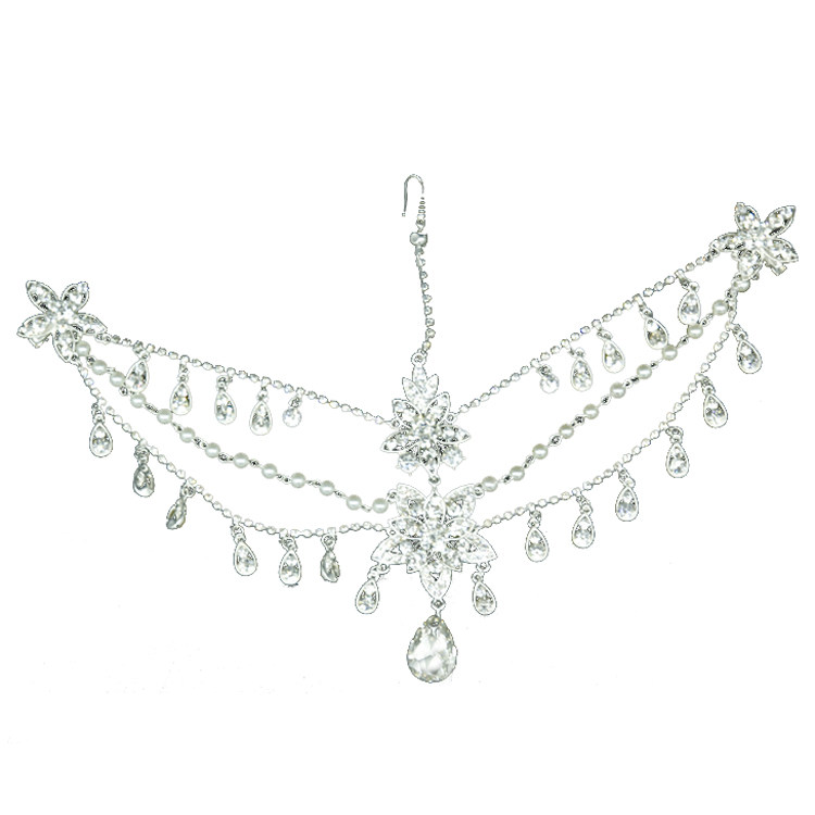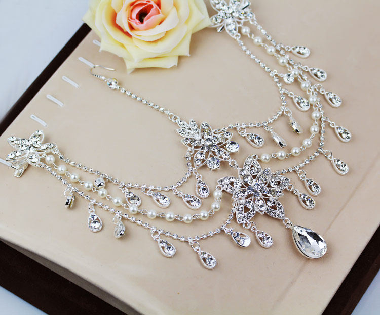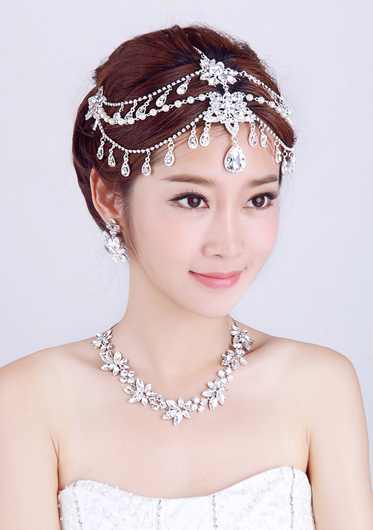 Japan-ROK bridal headwear three-piece necklace suit Handwear accessories Exotic India Princess Wedding Dress Forehead Chain Hair Accessories