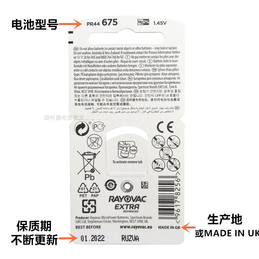 Imported Leitway RAYOVAC hearing aid battery 675pr44 1 45v button battery cochlear battery