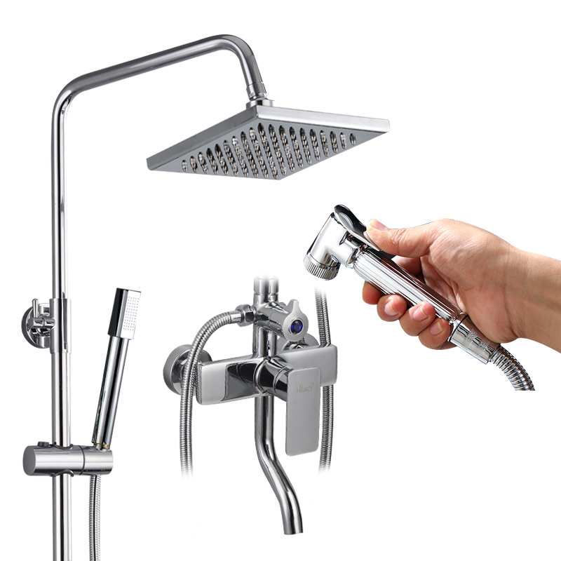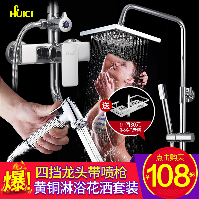 Porcelain Shower Kit Copper Rain Shower Faucet Hot & Cold Water Pressurizing Sprayer Bathroom Four Grade Copper Rain Shower