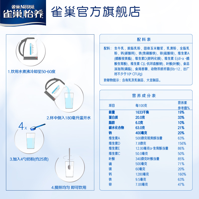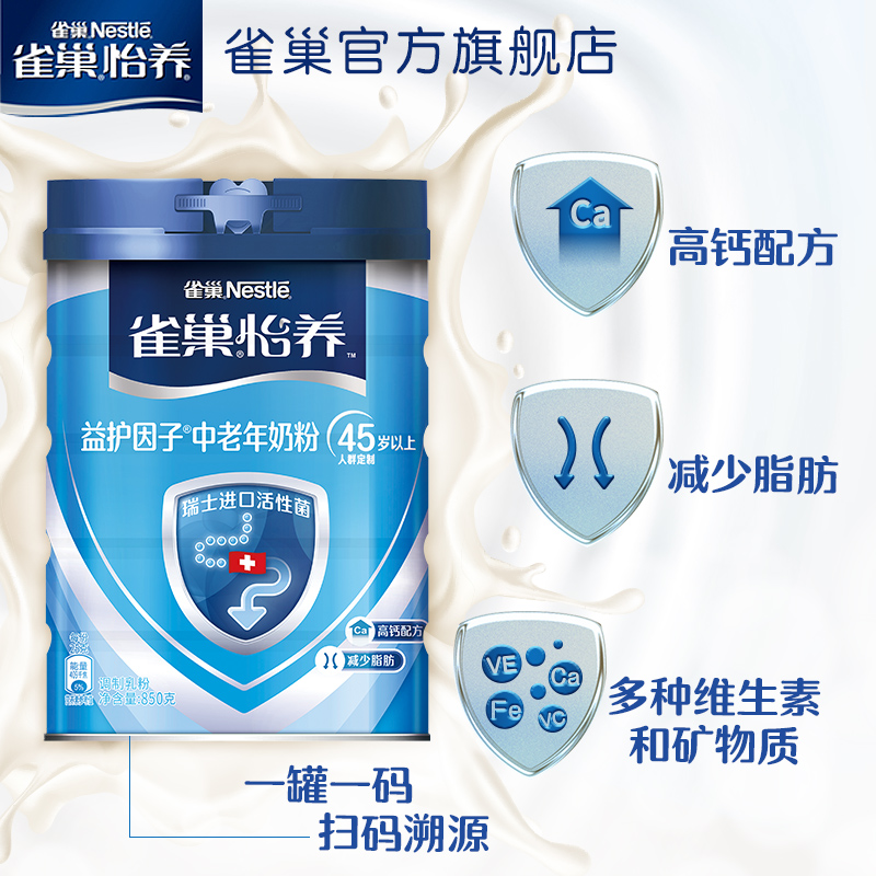 (Flagship store)Nestlé Yi Yang Probiotic factor probiotic high calcium middle-aged milk powder adult gift 850g