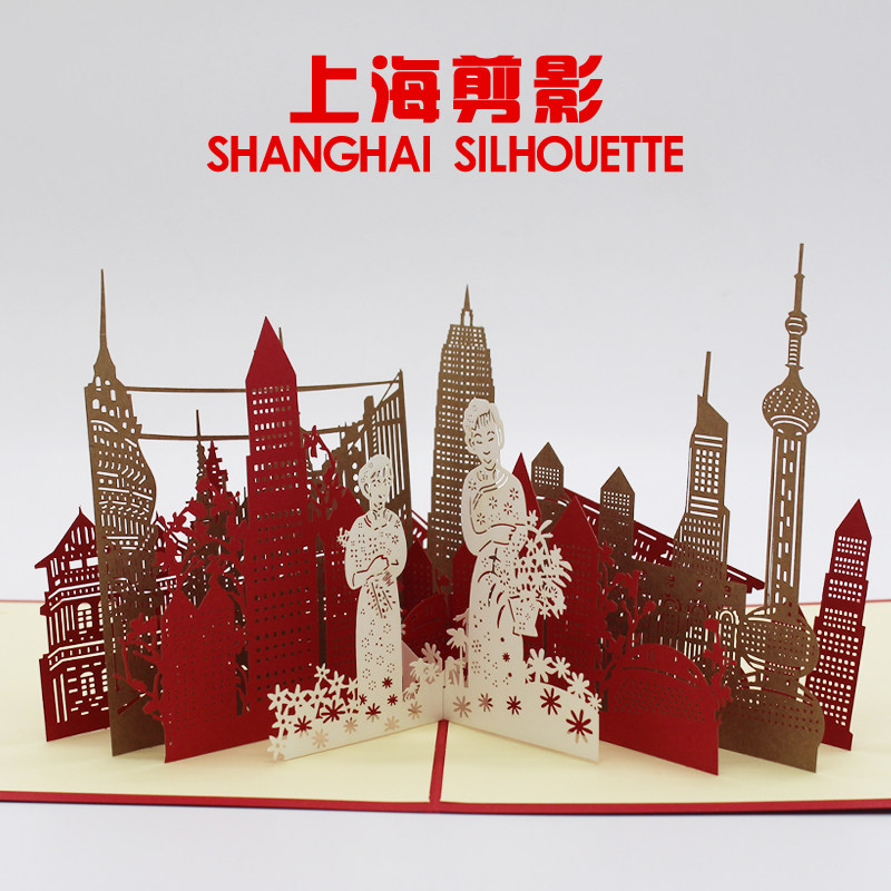 Guangzhou silhou 3D stereo creative Chinese windpaper carving card written custom printing blessing logo hot silver