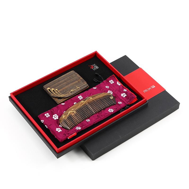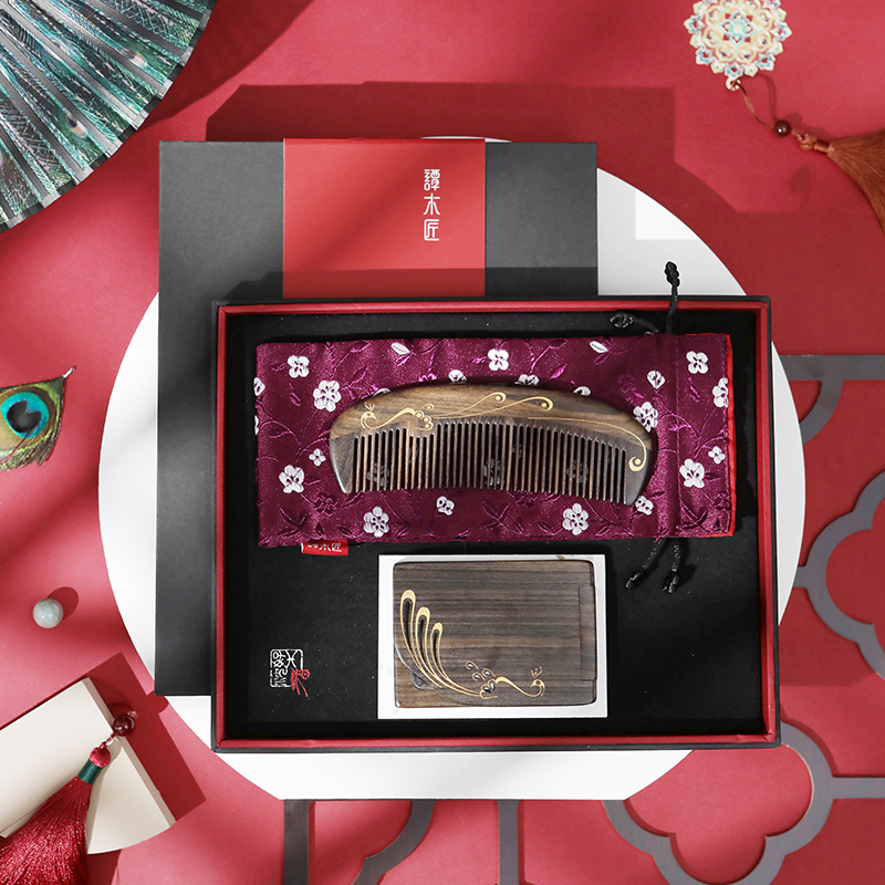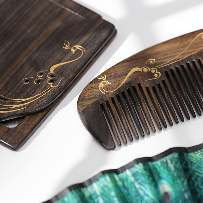 Carpenter Tan gift box comb mirror Set Bird feather a natural wood comb makeup mirror Holiday gift