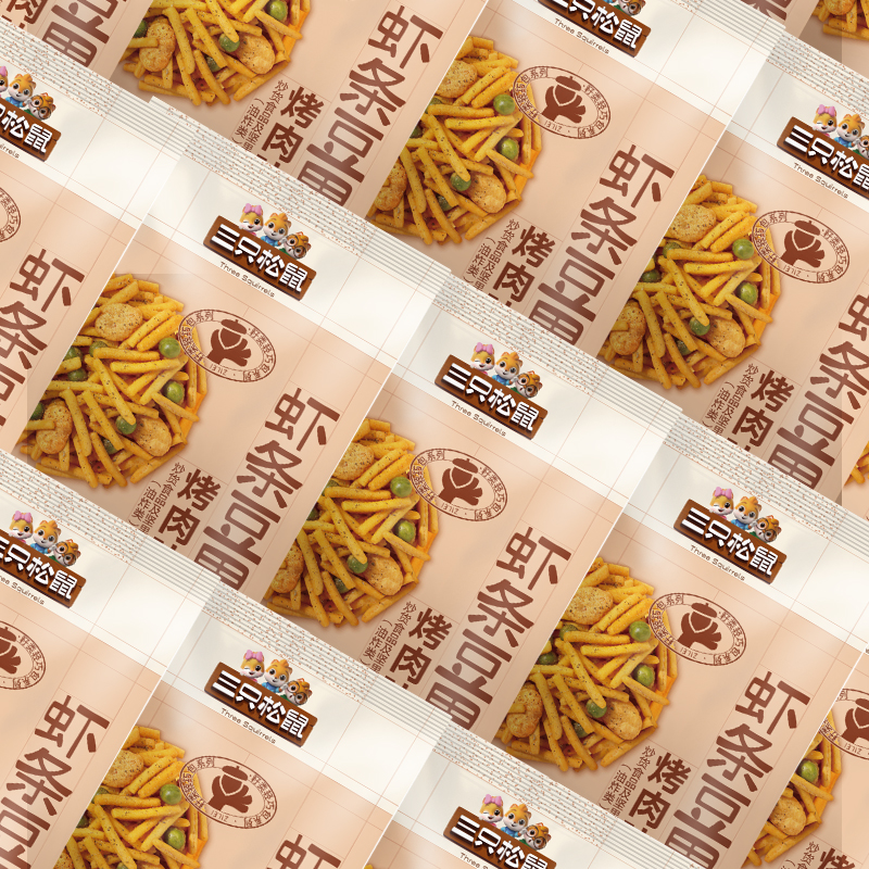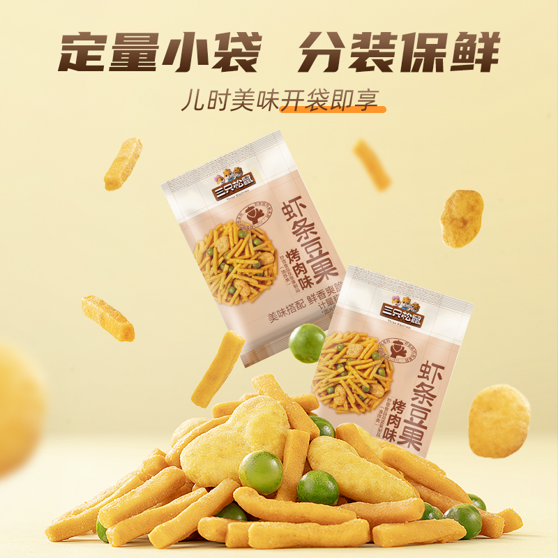 Three squirrels of squirrels and shrimps of beans.