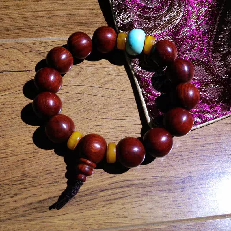 Old material high density small leaf purple sandalwood Buddha bead bracelet men's raw ore pine beeswax gift hand held wild 15mm