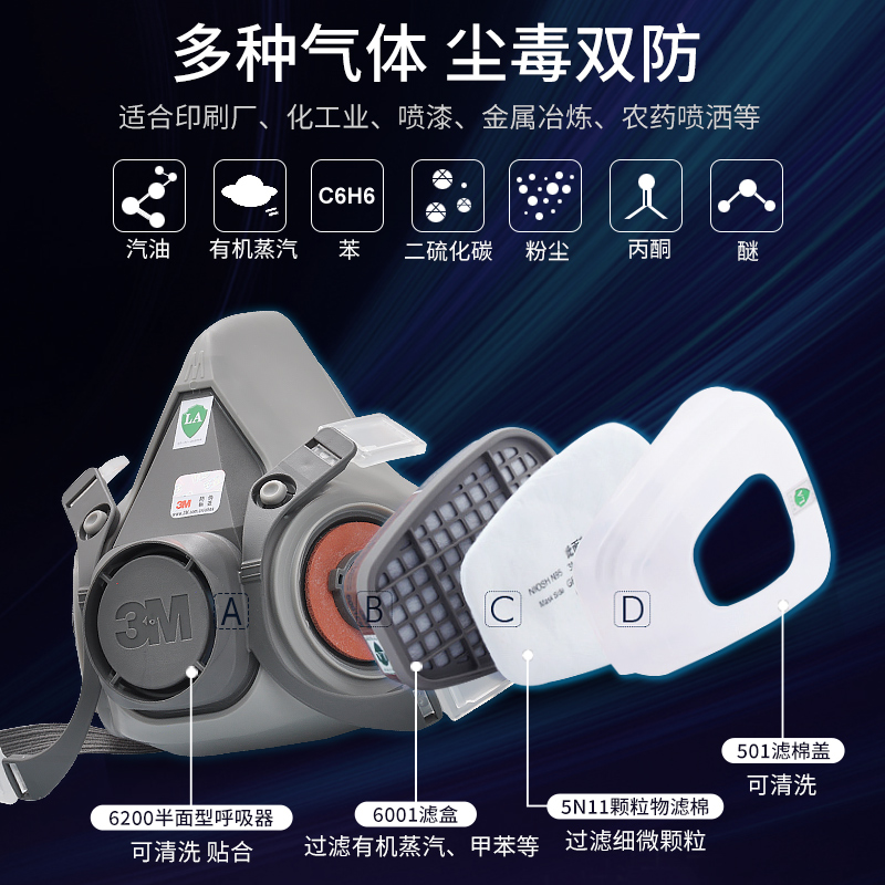 3M Anti-gas mask 6200 Anti-poison cover Painting special mask dust-proof chemical gas anti-formaldehyde pesticide mouth and nose cover