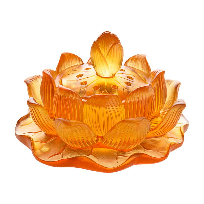 Glazed Sacred AMBER COLOR SMALL LOTUS FLOWER INCENSE STOVE GIFT BOX INSTALLED MULTILAYER LOTUS LEAF INCENSE STOVE ANCIENT METHOD GLAZED