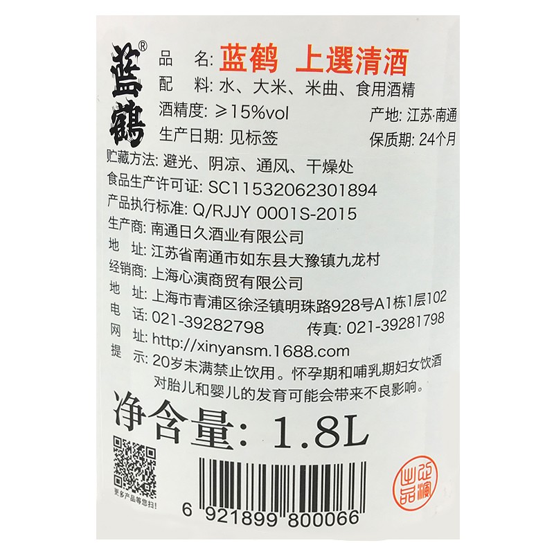 Japan flavours 1 8 rice wine in Japanese style Wine Blue Crane on the Japanese Wine China Day Material Low-to-Burn Wine Brew