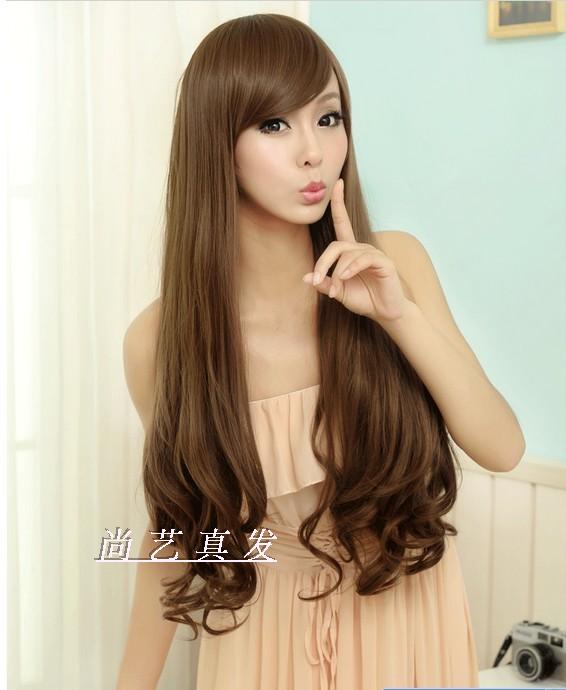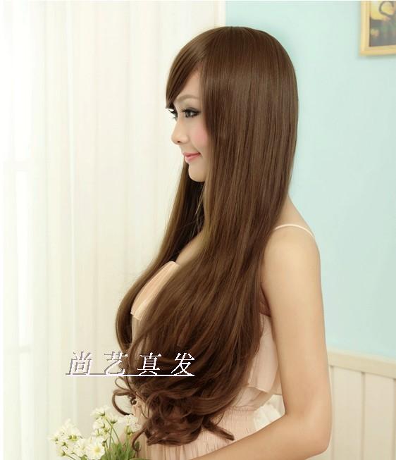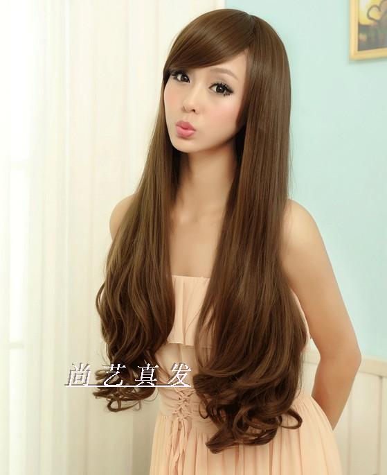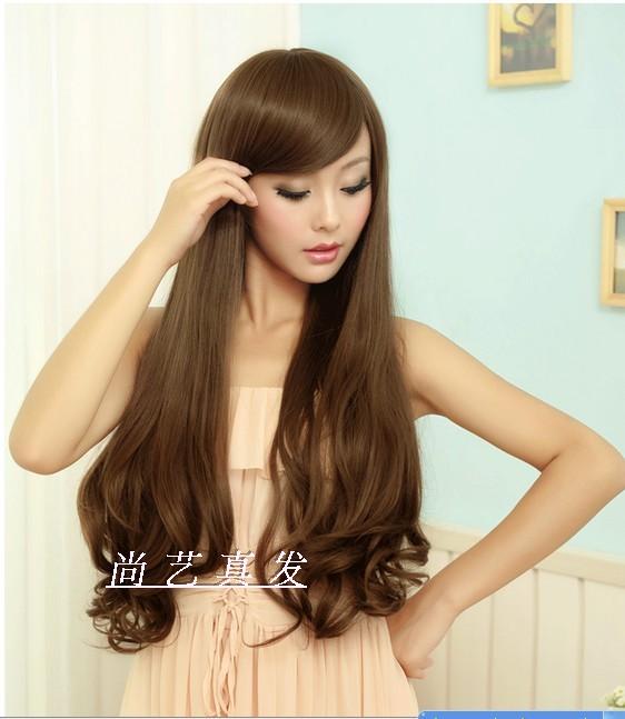 Real hair wig goddess Fan super long hair tail curly long straight hair repair face temperament type real hair wig set