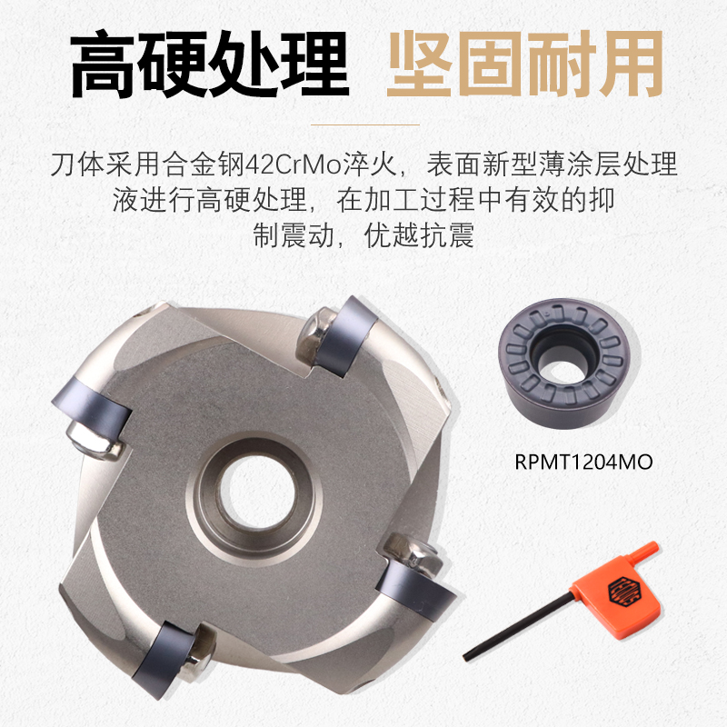 CNC milling cutter hard RPMT120 blade 4 white machining center R6 round nose face milling head EMRW 63