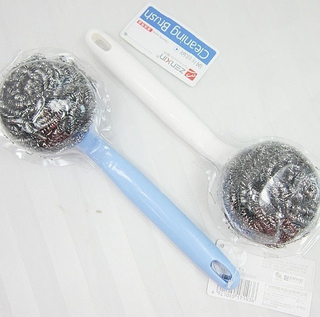 Revitalisable steel wire ball washing pan brushed kitchen dishwashing pan brushed oil brushed stainless steel cleaning ball with handle
