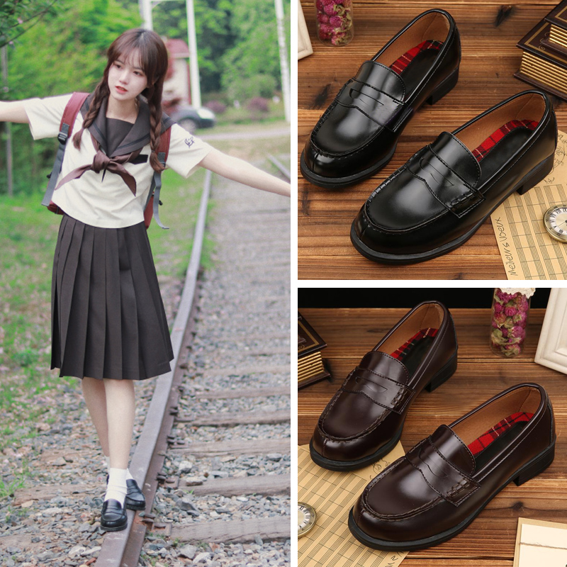 Japanese orthodox student cedar jk uniform shoes brown Japanese college style cos flat heel performance shoes small leather shoes 0203