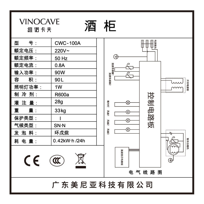 Vinocave Winocoff CWC-100A Wine Cabinet Thermostatic Wine Cabinet Refrigerated Ice Bar in the Small Wine Cabinet for Home Use