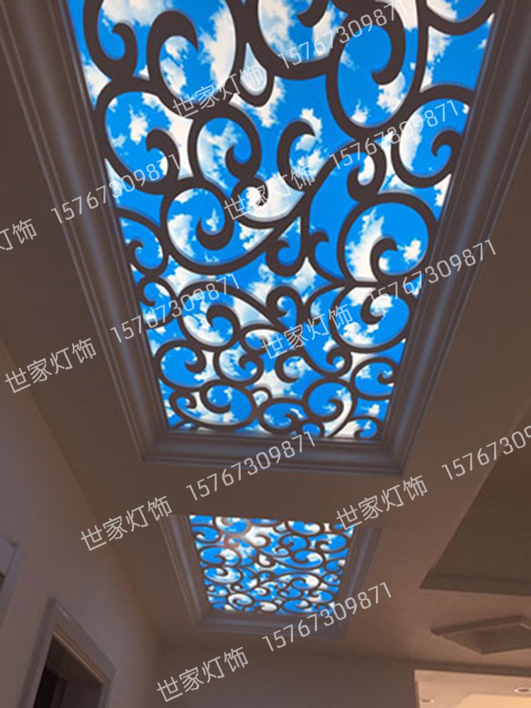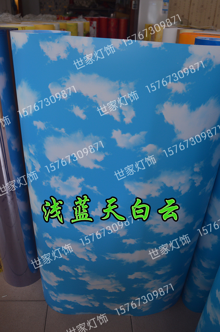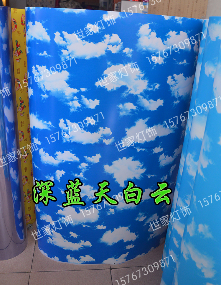 Parchment paper pvc lamp shade material blue sky white cloud family clothing suspended ceiling wood carved flower plate flower lattice light transmission light sheet film diy