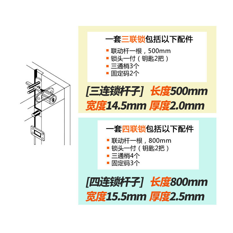 Drawer lock lock cylinder Three drawer lock One drag three drawer linkage lock Movable cabinet drawer body lock Drawer lock cylinder