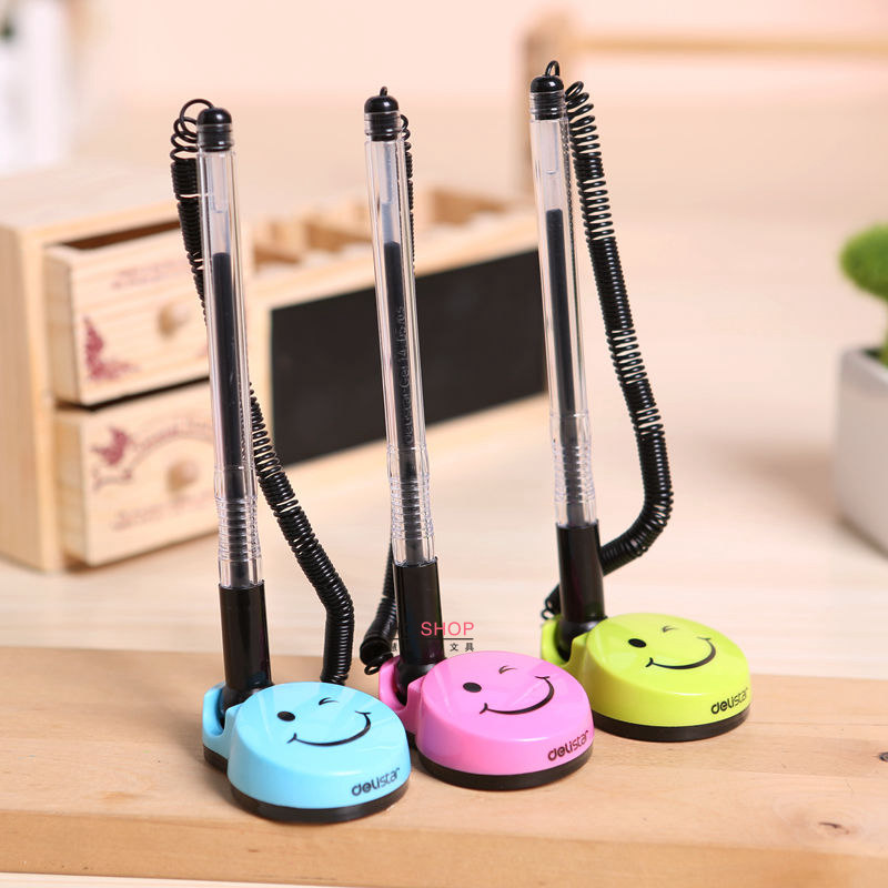 Powerful smiling face desk pen writing smooth neutral pen black creative cute 0 5mm office fixed signature pen