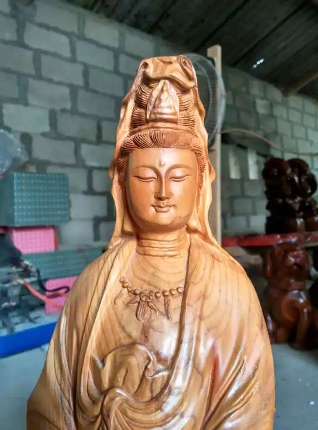 Nanhai Guanyin Ruyi Buddha statue yew wood carving crafts decoration mahogany town house living room gift