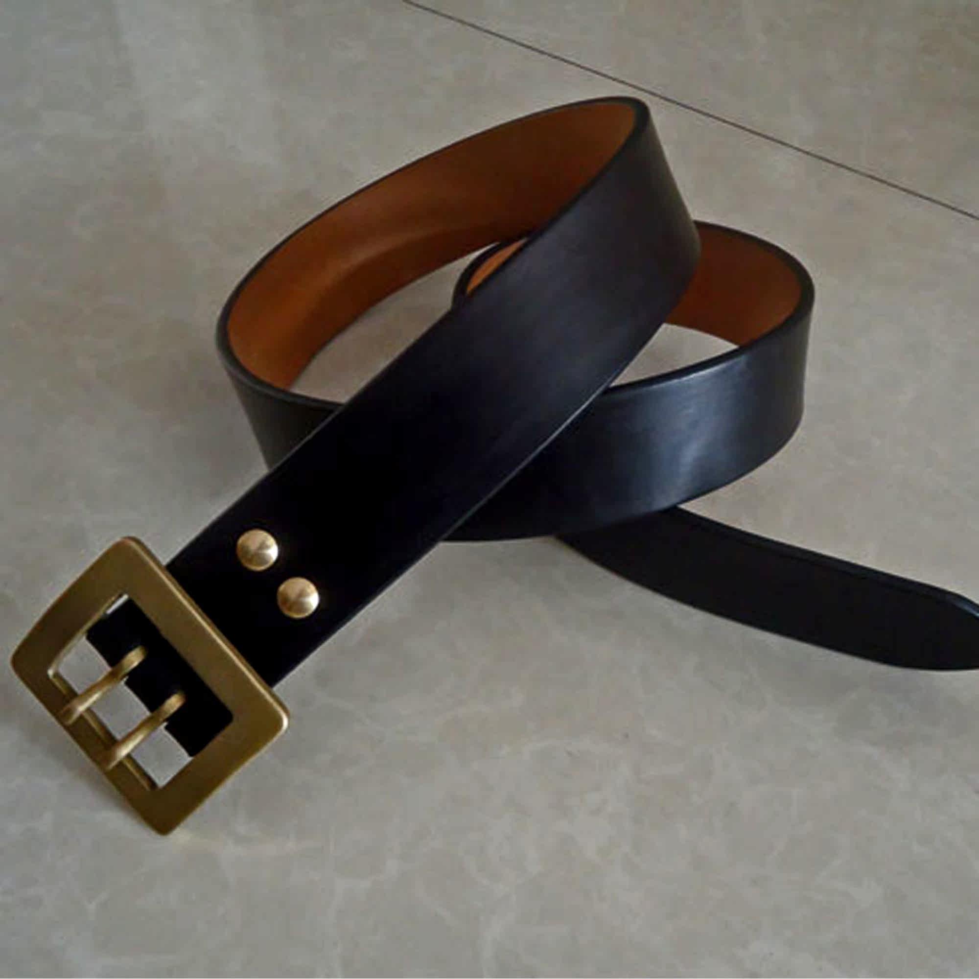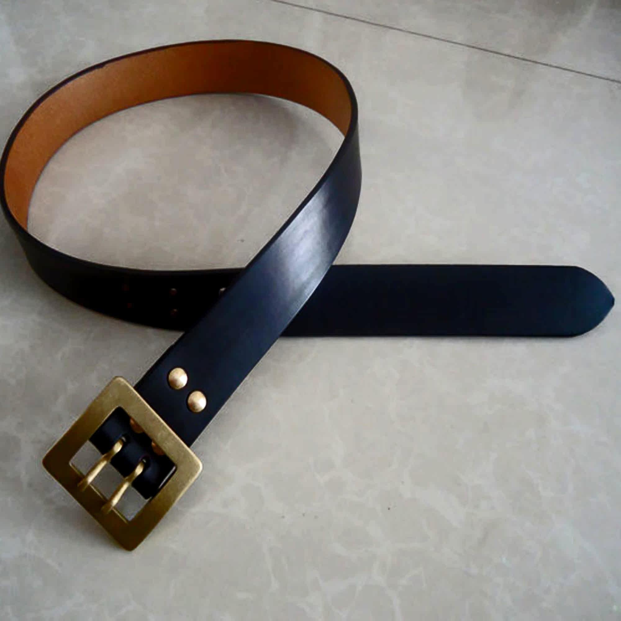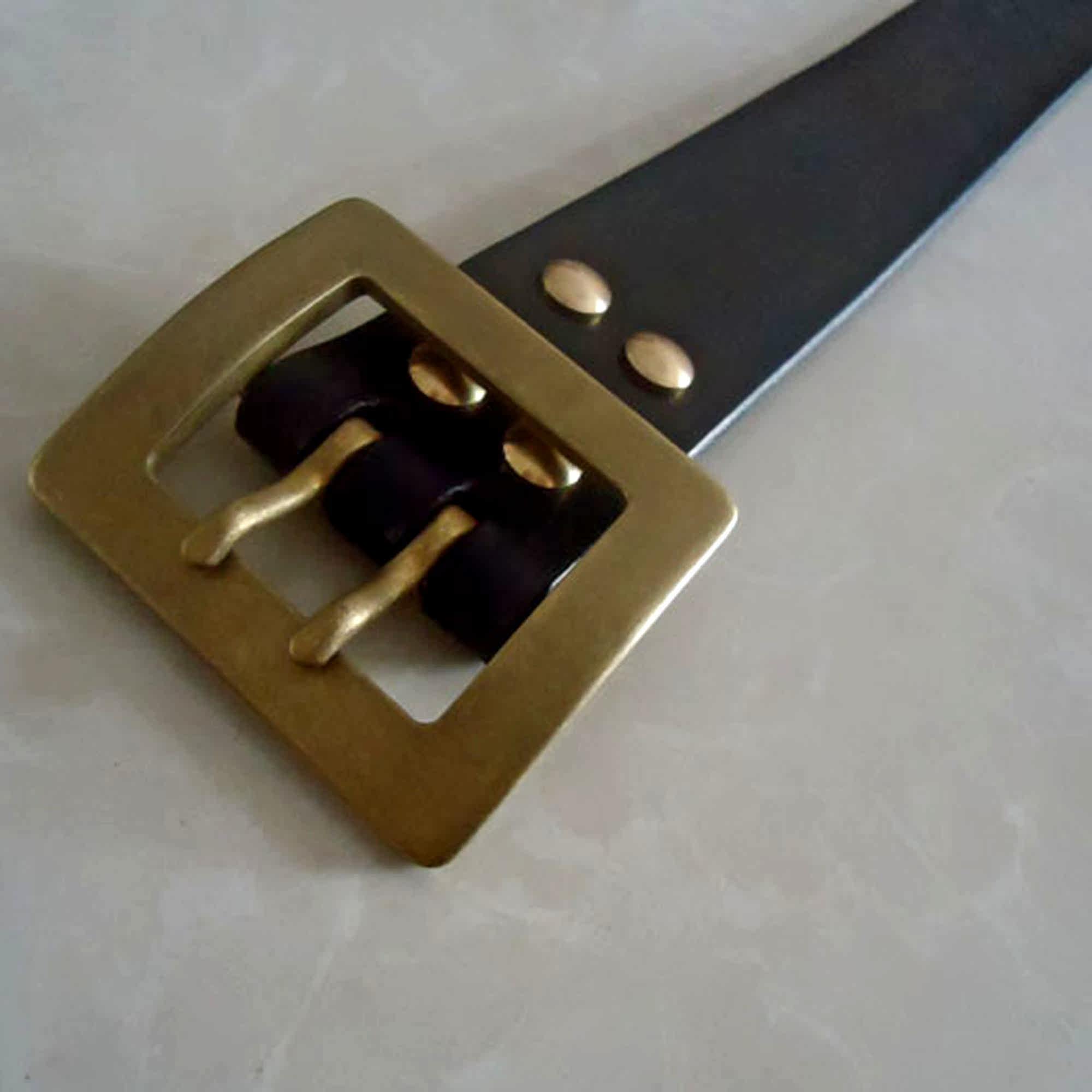 Muzi handmade pure copper vintage classic click style double needle vegetable tanned leather belt buckle pants with head single buckle price