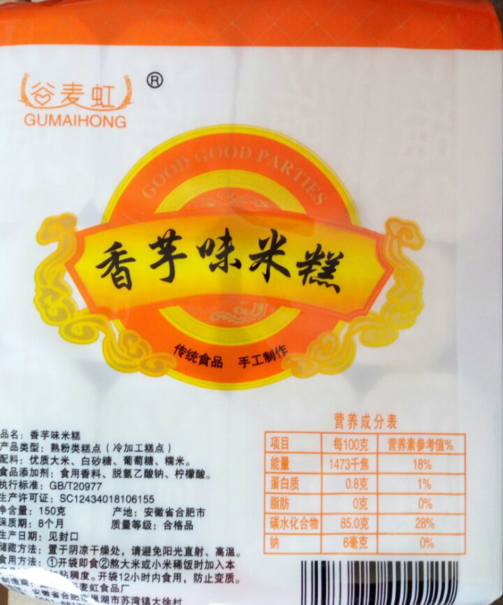 Anhui specialty grain wheat Hong Xiang Taro instant rice cake 1 bag 150g20 small pieces of traditional pastry pat 10 bags
