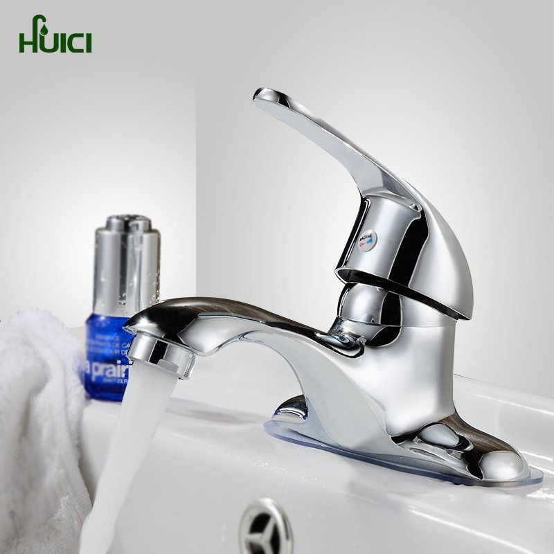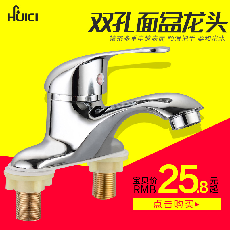 Huicai sanitary ware double faucet Copper body basin faucet Hot and cold water faucet Double hole three hole washbasin faucet