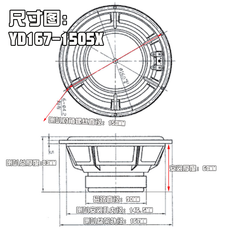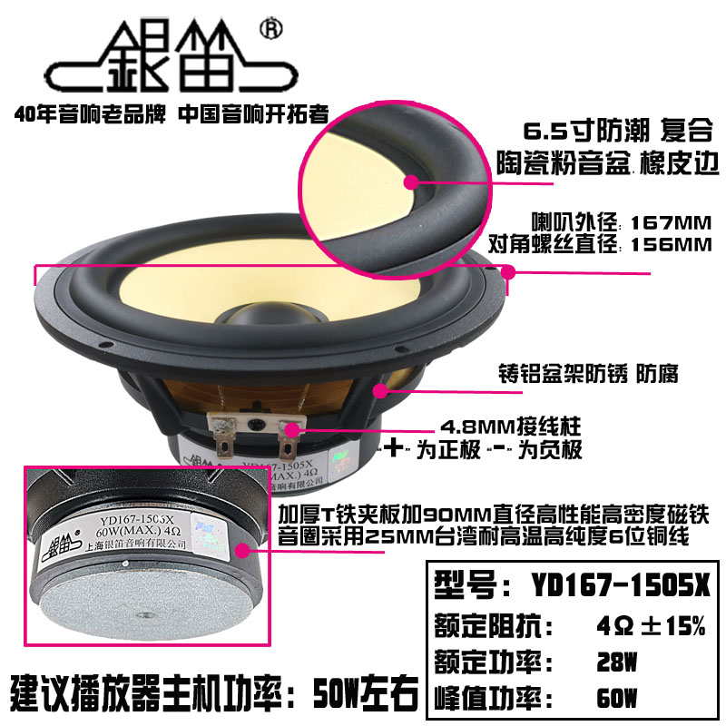 Silver flute car door audio modification 6 5-inch mid-bass new ceramic disc 4 Euro horn YD167-1505XI set