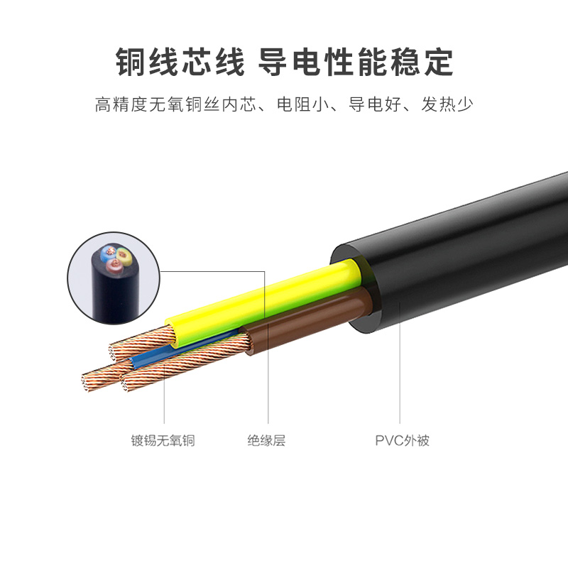 Dell computer LCD power cord Charging cable Display computer desktop main box power adapter charging cable AC plug product suffix bold pure copper 1 8 meters 10A