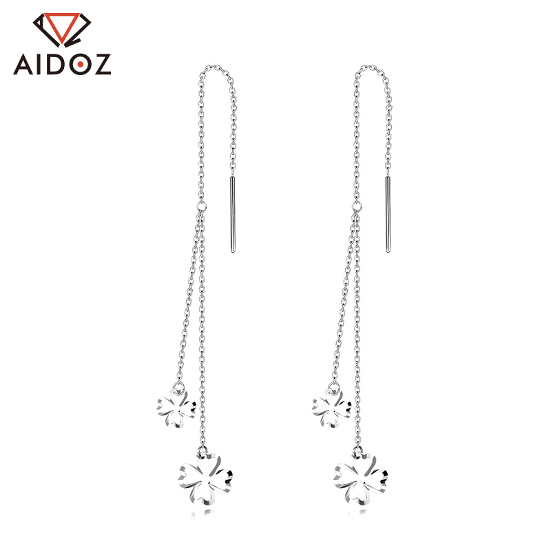 Pure Gold Four Leaf Grass pt950 Platinum Ear Necklace Long Version Women's Fashion Brief Earrings White Gold Flow Suearrings Earrings