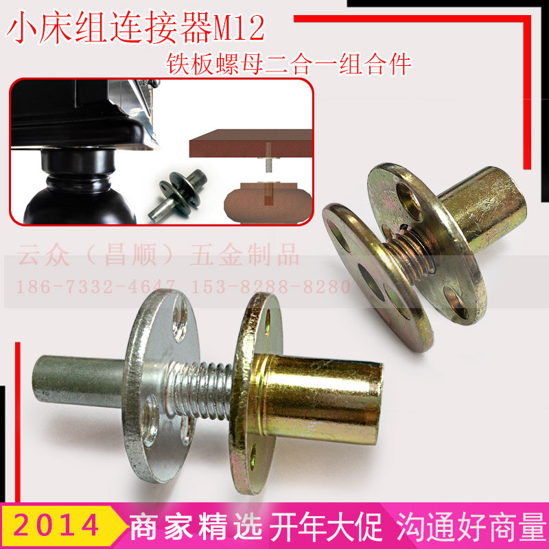 Bed column connector for lock three - hole nut connector Iron plate to lock nut cylindrical splinter nut M12