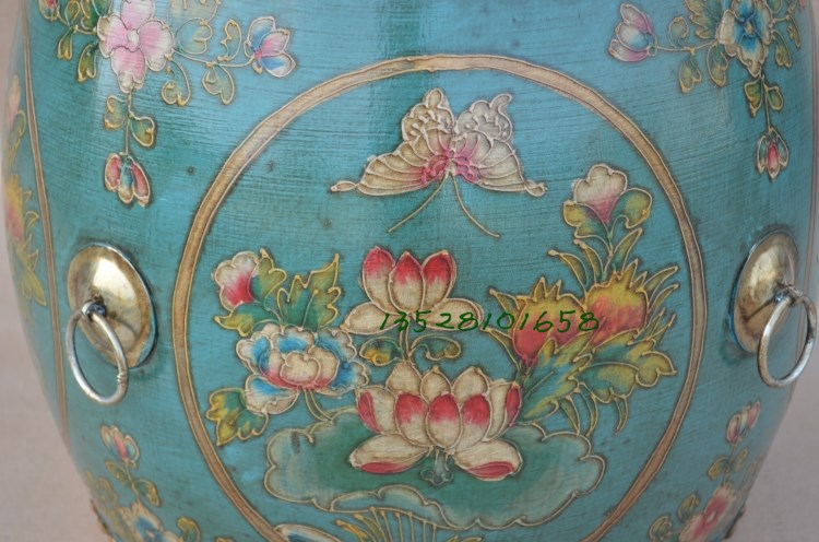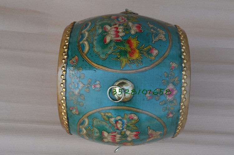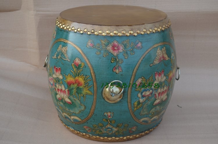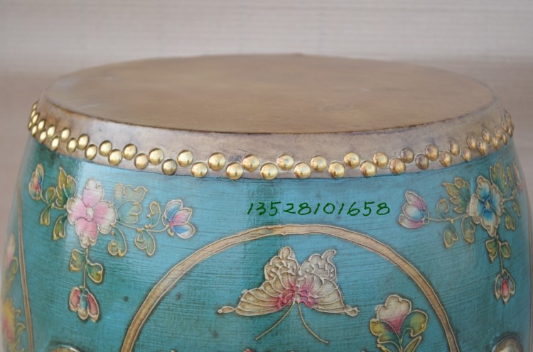 Genuine leather craft stool blue hand-painted painted solid wood individuality round mound drum pier round stool small stool