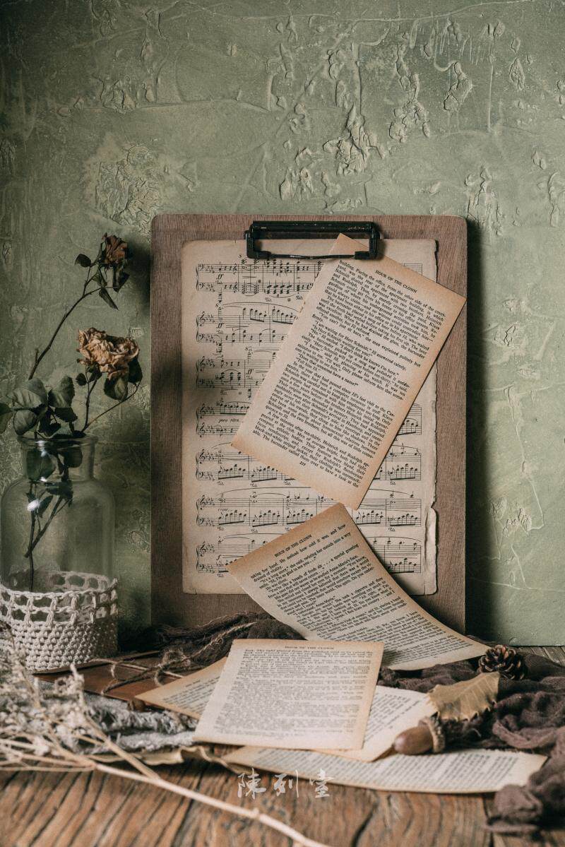 Retro nostalgia English old paper Background Paper Decorative Storefront Display Groceries Ancient Antique Book Page Photo Props
