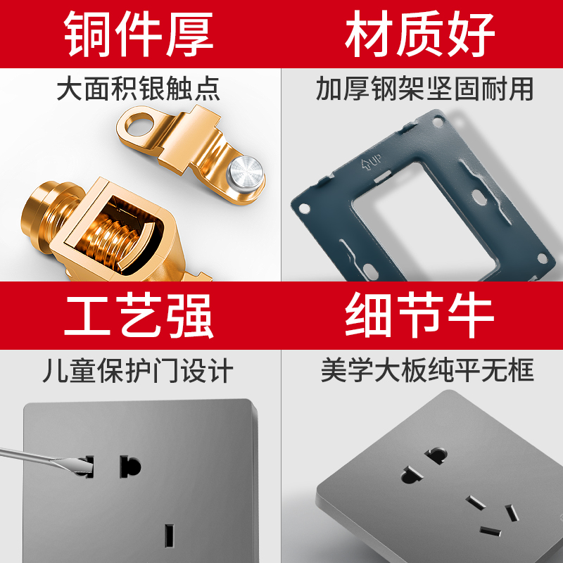 International Electrician Switch Socket Panel Home Grey 86 Type Concealed Open Double Cut with 5 5 holes Full house package