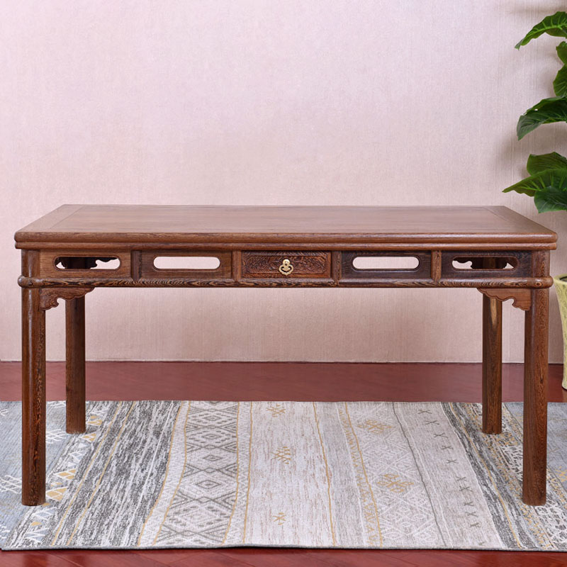 Xianmingyuan chicken wing wood new Chinese style home restaurant dining table combination rectangular one table six chairs dining table solid wood