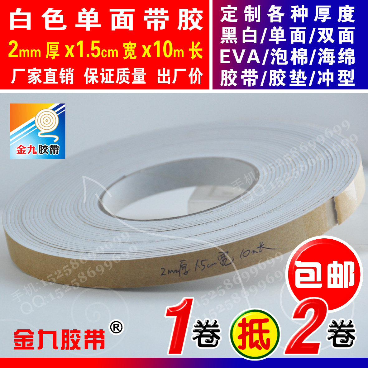 White single-sided EVA foam sponge adhesive tape foam shockproof sealant strip cushion 2mm thick x1 5cm Width x10m Long