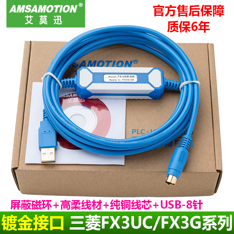 Amosnshi Mitsubishi FX3U series PLC dedicated programming cable data download line FX-USB-AW communication connection