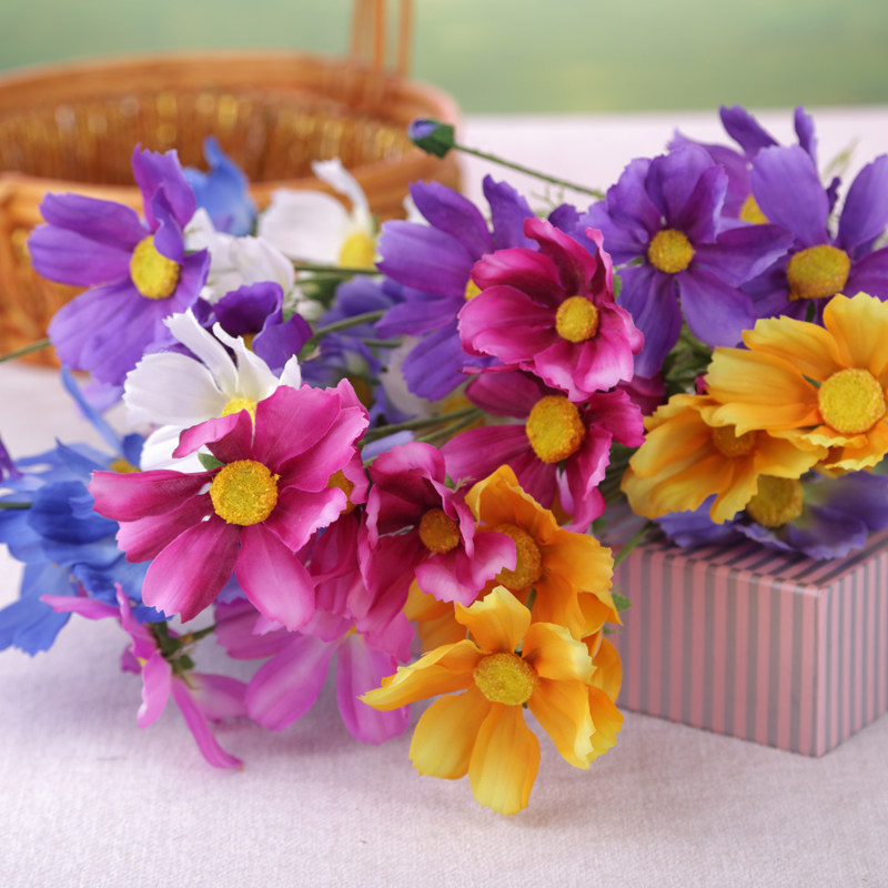 Emulated flower fake flower African daisy bouquet with small frescoed parlor in the living-room silk flower lattice mulberry flower Persian chamomile to put flowers-Taobao